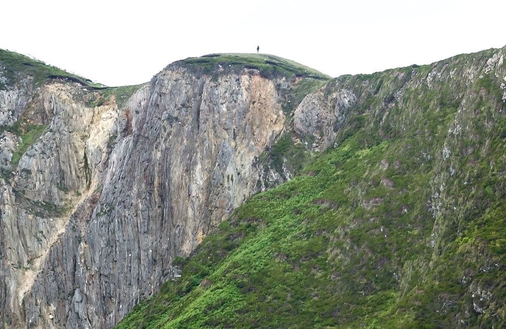 Oben auf den Klippen von Slieve League, an der Nordwestküste Irlands, stand jemand ganz allein und genoss die schöne Aussicht.