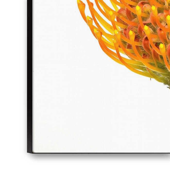 Nutan, (Leucospermum), eine orangefarbene Blüte, mit weißem Hintergrund