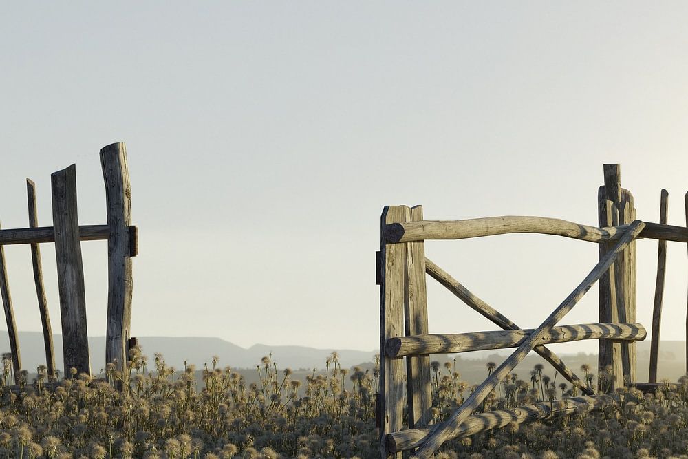 Offen stehender alter Holzzaun