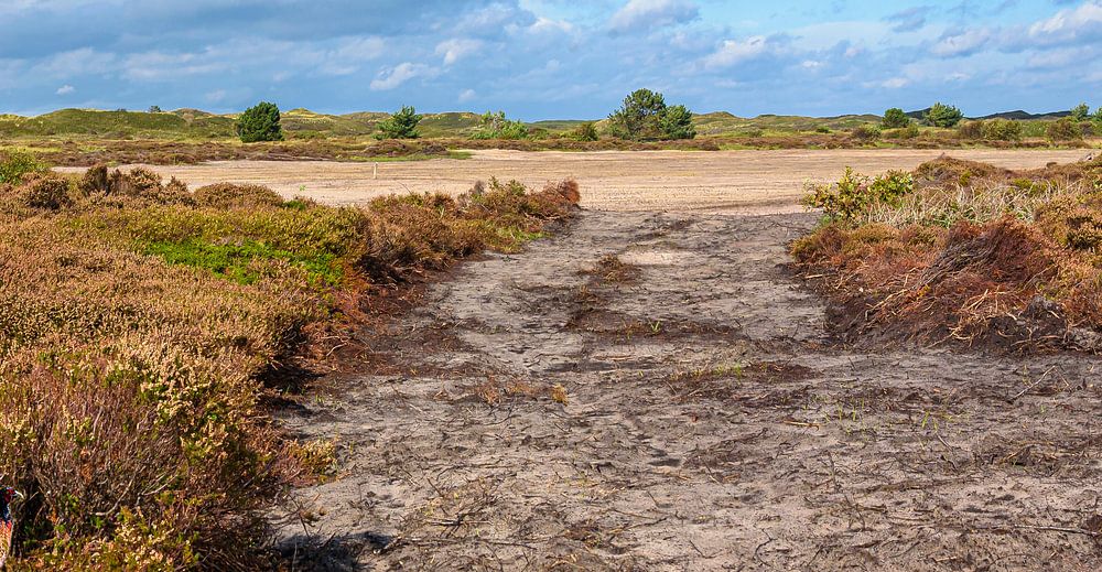 Die Natur auf Texel ist aufgrund der vielfältigen Landschaften, an denen die Insel reich ist, einzigartig. Von den farbenfrohen Dünengebieten über Heideland, lange Wanderstrände, Kiefernwälder bis hin zum Wattenmeer. Dies ist der Nationalpark Dünen von Texel an der Grenze von Wald und Dünen verläuft ein schöner Fahrradweg.