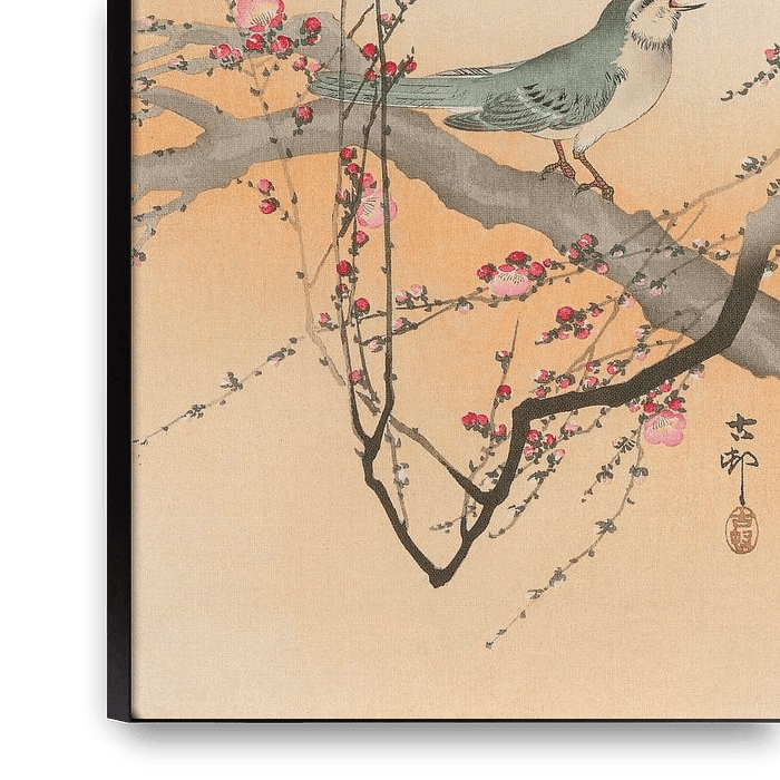 Bestelle dieses Vögel Wandbild Ohara Koson - Japanischer Buschrohrsänger und Japanische Pflaume (bearbeitet) von Peter Balan als Reproduktion auf Leinwand, Alu-Dibond, als Poster, Fototapete, ArtFrame oder Acrylglasbild, maßgefertigt in höchster Qualität.