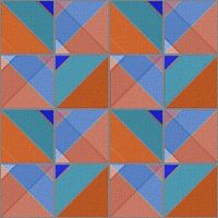 Abstrakte digitale Acrylfarbenmalerei mit geometrischen Formen in Terrakotta- und Blautönen
