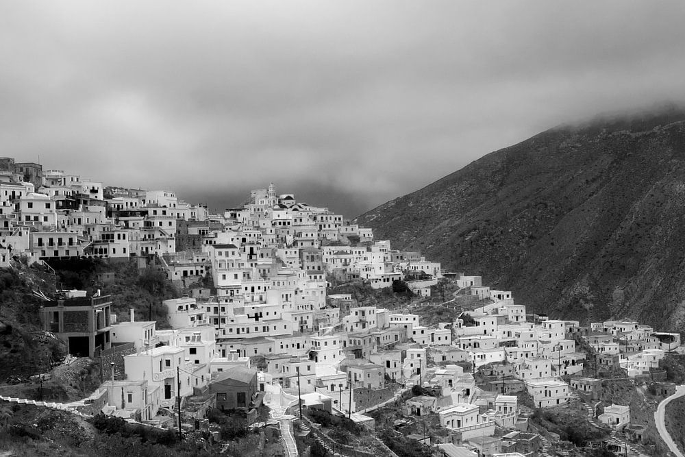 Olympos, Karpathos, Griechenland in Schwarz und Weit