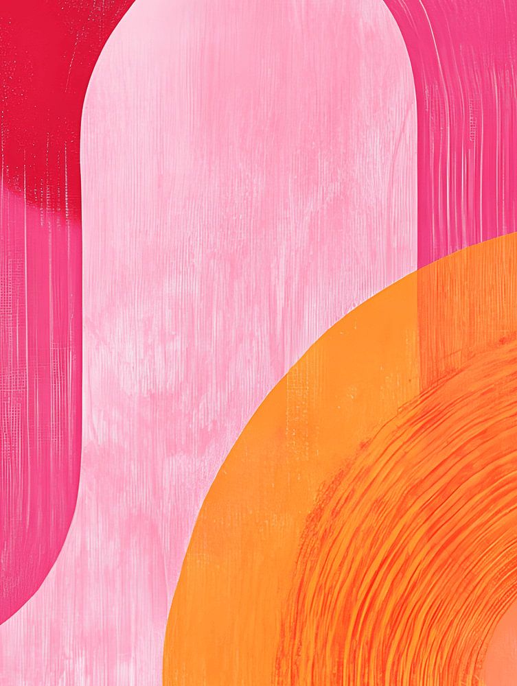 In diesem Kunstwerk wird ein abstrakter Ausdruck in einer Mischung aus rosa und orangenen Farben und Schattierungen zum Leben erweckt, die wunderbar miteinander verschmelzen und eine verspielte Atmosphäre hervorrufen.