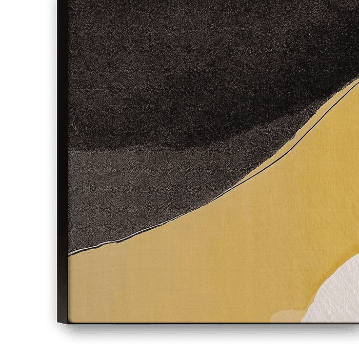 Eine harmonische Komposition aus fließenden Linien und sanften Farbübergängen in Rosa-, Gold- und Schwarztönen. Die abstrakte Landschaft erinnert an eine ruhige Wüste bei Sonnenaufgang, in der organische Formen und subtile Texturen zu einem modernen, minimalistischen Kunstwerk verschmelzen.