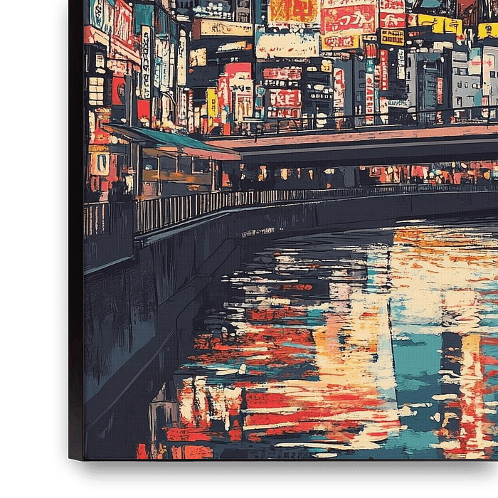 Dieses Kunstwerk ist eine Darstellung der japanischen Stadt Osaka mit ihrem geschäftigen Treiben. Zu sehen ist der Tsutenkaku-Turm, ein Wahrzeichen von Osaka.