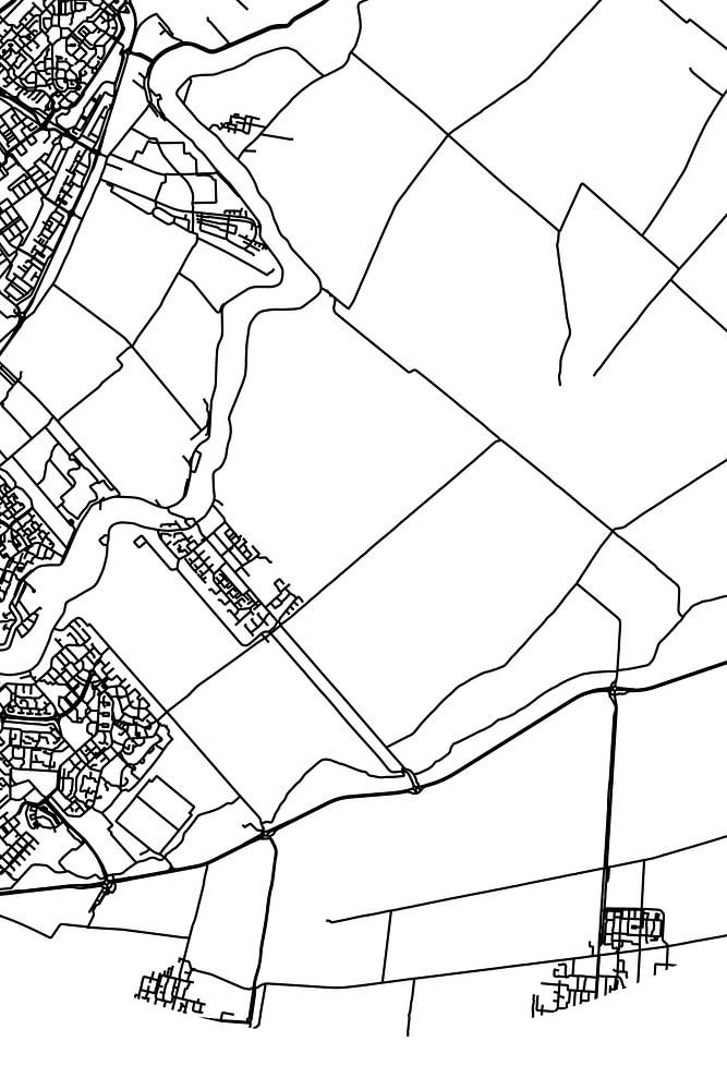 Schwarz-weiße Karte, Straßenkarte oder Straßenplan von Ouderkerk aan den IJssel. Ouderkerk aan den IJssel liegt in der Gemeinde Krimpenerwaard in der Provinz Südholland. Der Stadtplan zeigt alle öffentlichen Straßen in Ouderkerk aan den IJssel. Die Karte zeigt auch die Koordinaten des Stadtzentrums von Ouderkerk aan den IJssel.