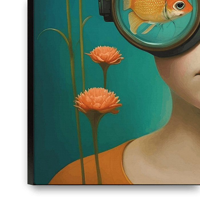 Ihre gewählte Kunst auf Leinwand, gespannt in einem Aluminiumrahmen. Schnell und einfach austauschbar für eine frische Ausstrahlung und ganz nach Ihren Wünschen.