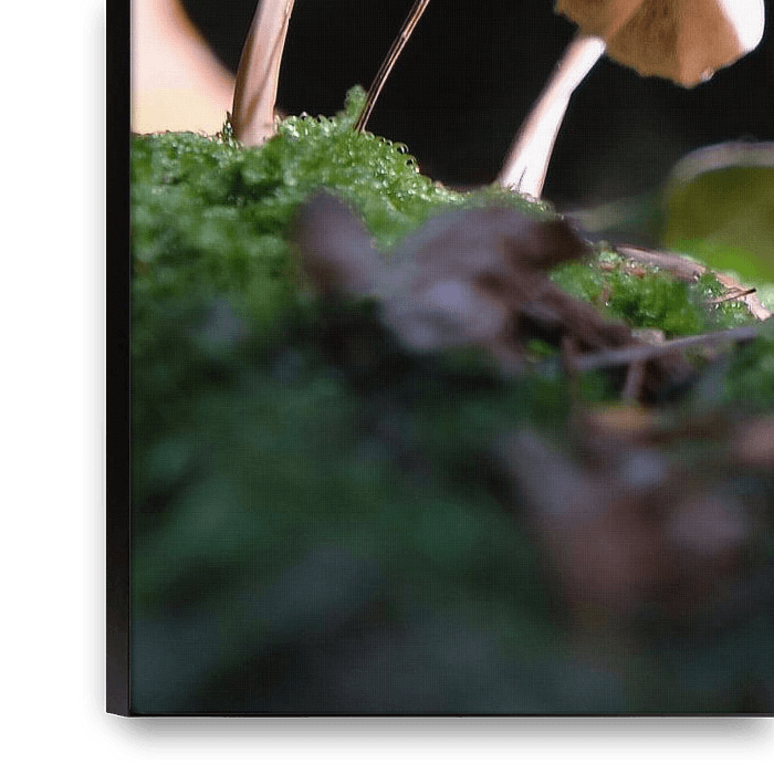 Mijn oog viel op deze kleine paddestoelen, prachtig verlicht door de zon in het donkere bos. De eerste tekenen van de herfst.