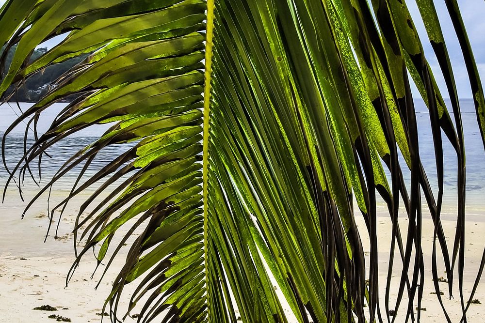 Palmen an tropischen Stränden auf den Seychellen