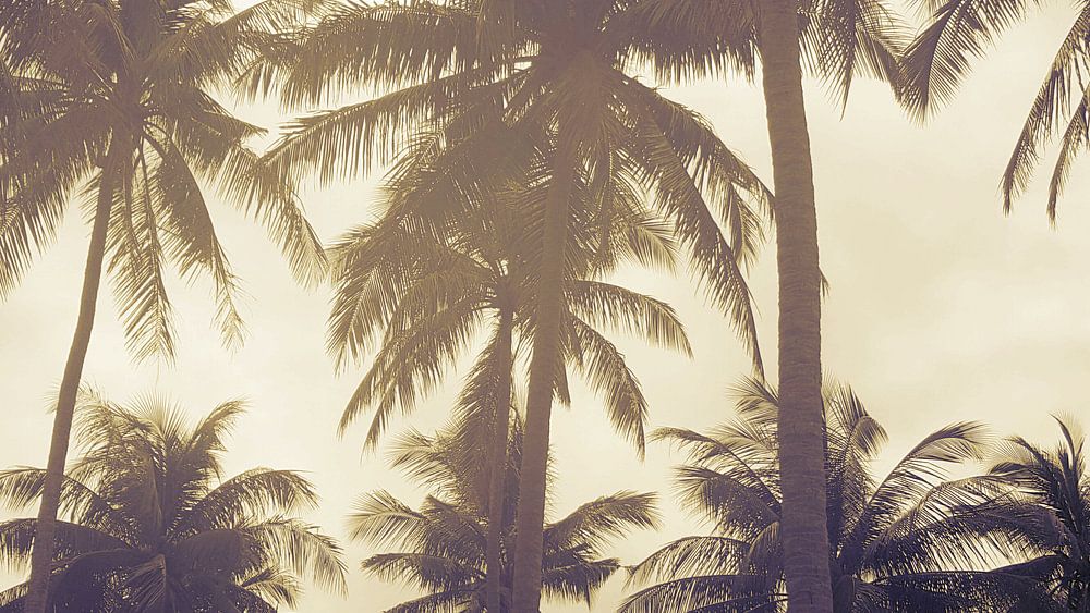 Einzigartiges Gegenlichtfoto von schönen Palmen gegen eine untergehende Sonne auf Koh Yao Yai in Thailand.