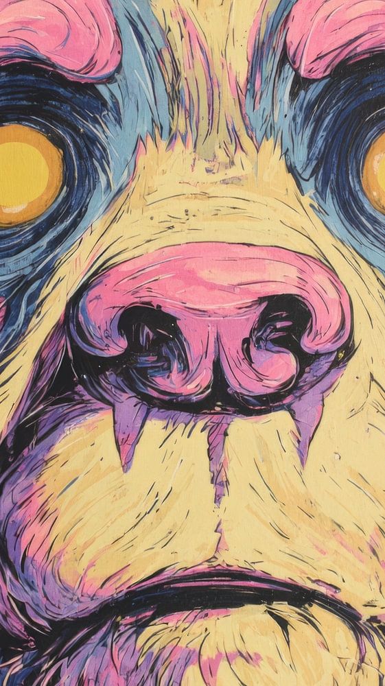 Diese explosive Illustration im Street-Art-Stil zeigt einen Panda, wie Sie ihn noch nie gesehen haben - in leuchtenden Farben in Blau, Gelb und Pink, mit hypnotischen, leuchtenden Augen und einem wilden Ausdruck. In dieser energiegeladenen Komposition voller Tropfen, Spritzer und grafischem Chaos spritzt die Farbe förmlich von der Leinwand. Die kontrastreichen Farben und scharfen Linien verleihen dem Werk eine rohe, emotionale Wirkung, die perfekt zu den Einflüssen der Urban- und Pop-Art passt. Ideal für Fans bahnbrechender Tierporträts und kühner Wanddekorationen.