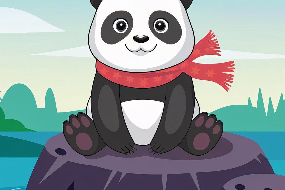 Dieser niedliche Panda strahlt Freundlichkeit und Wärme aus, während er mit seinem fröhlichen roten Schal auf einem Felsen in einer heiteren Umgebung sitzt. Vor dem Hintergrund eines friedlichen Flusses, grüner Hügel und eines sanften blauen Himmels vermittelt das Design ein Gefühl von Frieden und Freude. Der digitale Kunststil macht es verspielt und perfekt für Kinderzimmer, Arbeitsplätze oder jeden, der seinem Raum ein wenig mehr Farbe und ein Lächeln verleihen möchte. Der frische, minimalistische Stil und die Verwendung heller Farben machen das Design sowohl modern als auch zeitlos. Ideal für Tier- und Naturliebhaber und eine wunderbare Ergänzung für jeden Raum, der einen fröhlichen, energiegeladenen Look gebrauchen kann.