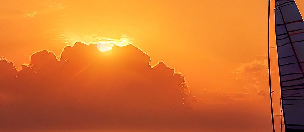 Panorama-Segelboot bei Sonnenuntergang Illustration