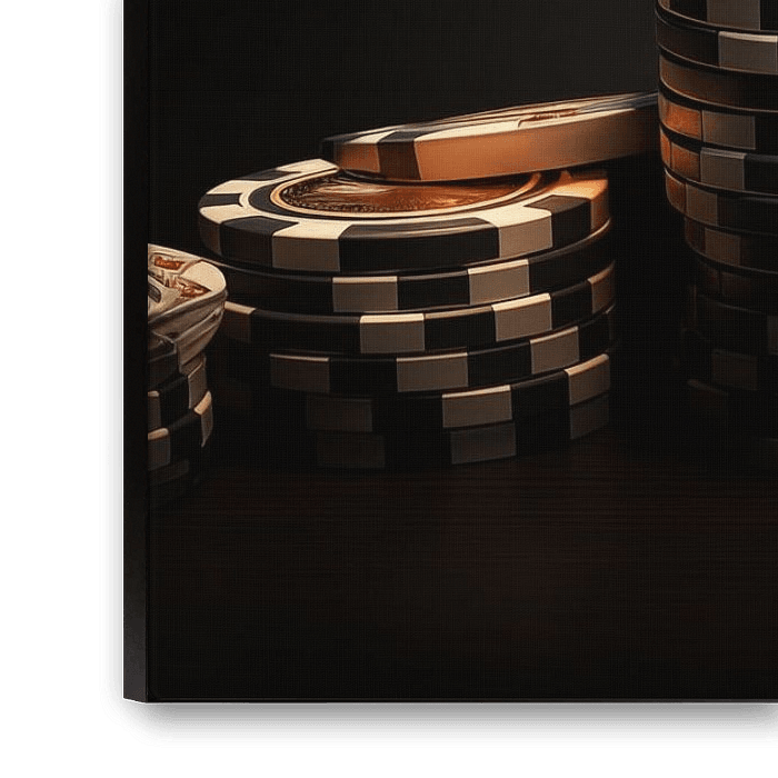 Das Panoramagemälde mit goldenen Pokerchips ist eine schöne, luxuriöse Ergänzung für jeden Raum. Mit seinem einzigartigen und stilvollen Aussehen zieht es sofort die Aufmerksamkeit auf sich. Die brillanten Farben und das ungewöhnliche Design machen dieses Kunstwerk zu 100% einzigartig und originell. Es ist der perfekte Fotodruck, um Ihr Interieur zu vervollständigen.