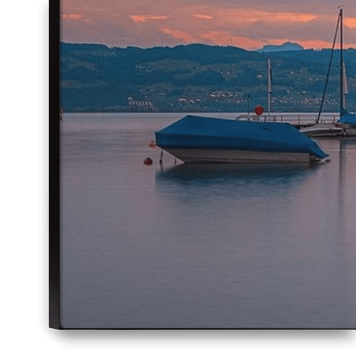 Ihre gewählte Kunst auf Leinwand, gespannt in einem Aluminiumrahmen. Schnell und einfach austauschbar für eine frische Ausstrahlung und ganz nach Ihren Wünschen.