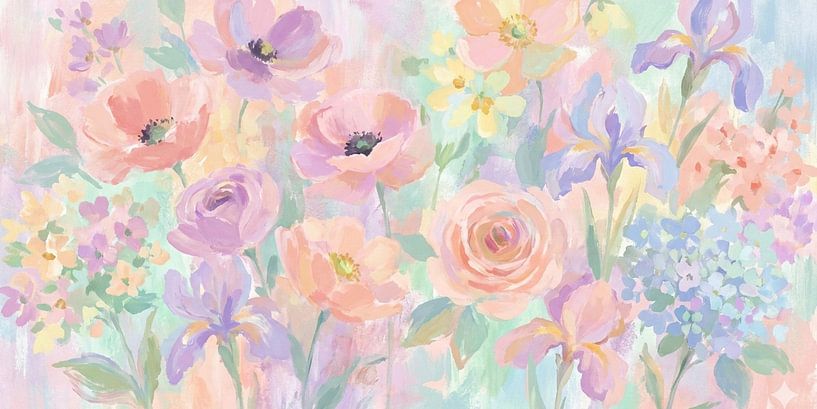 Bestelle dieses Blumen-Wandbild Pastellblumen von Niek Traas als Reproduktion auf Leinwand, Alu-Dibond, als Poster, Fototapete oder Acrylglasbild.