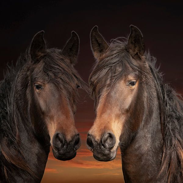 Bestelle das Foto Pferde, 2 Pferde in verschiedenen Farben von Gert Hilbink als Reproduktion auf Leinwand, Alu-Dibond, als Poster, Fototapete oder Acrylglasbild.