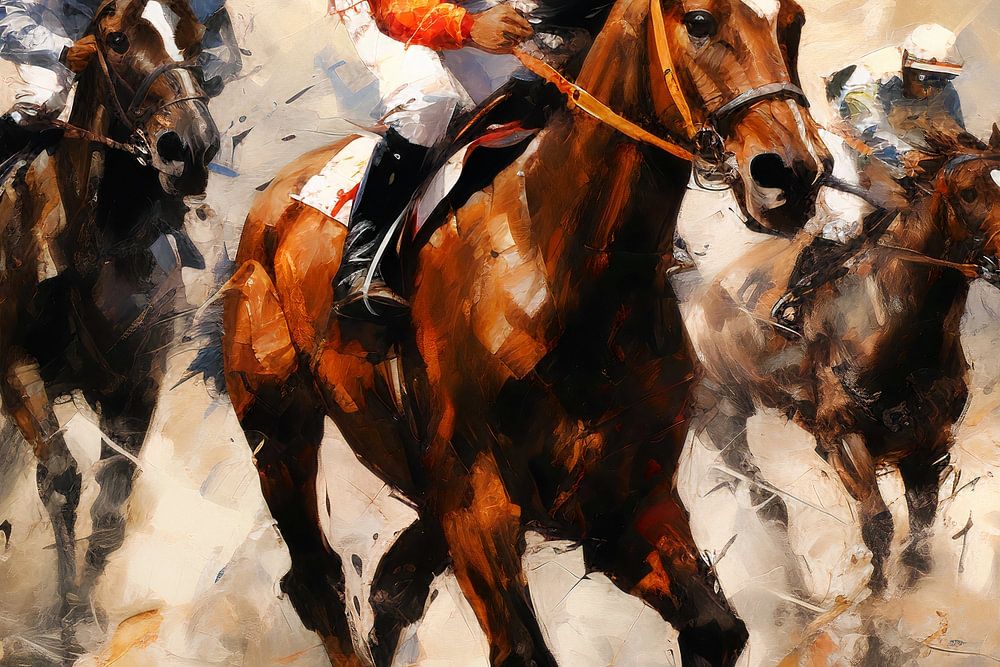 Eindrucksvolles dynamische Motiv eines Pferderennens, das wie ein Gemälde wirkt.