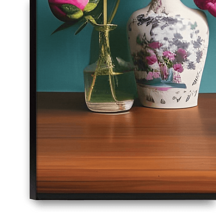 Ihre gewählte Kunst auf Leinwand, gespannt in einem Aluminiumrahmen. Schnell und einfach austauschbar für eine frische Ausstrahlung und ganz nach Ihren Wünschen.