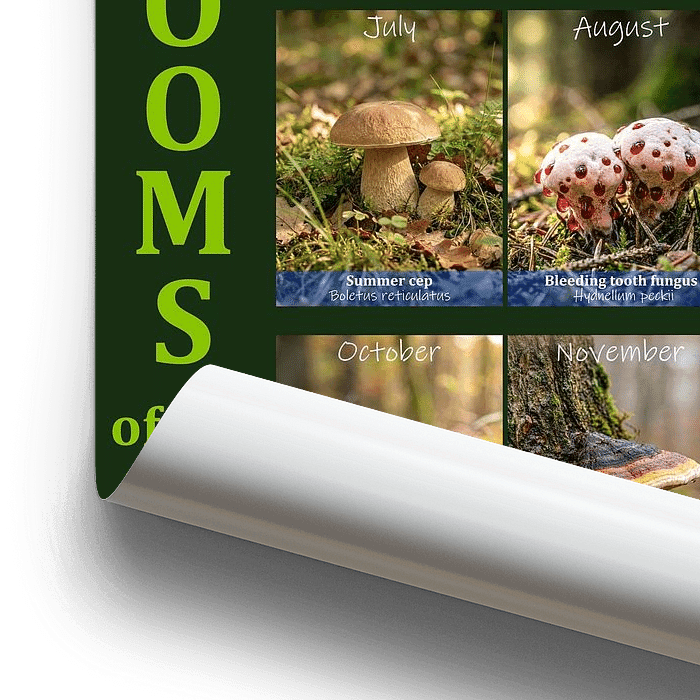 Für die deutschsprachige Version dieses immerwährenden Pilzkalenders geben Sie bitte folgende Bildnummer in die Suchleiste ein: 1898820