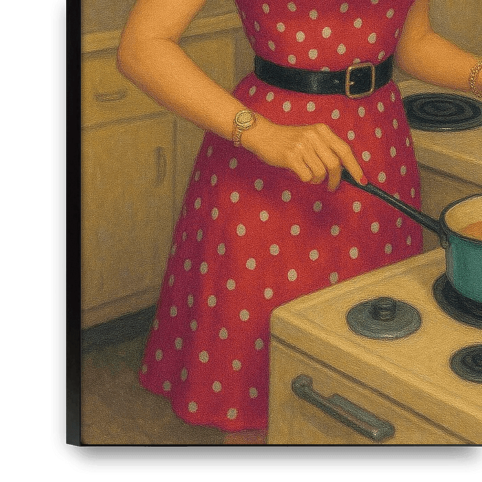 Bestelle dieses Popart-Wandbild Pin-up-Girl-Gemälde. von Galerie Hoppenbrouwers als Reproduktion auf Leinwand, Alu-Dibond, als Poster, Fototapete oder Acrylglasbild.