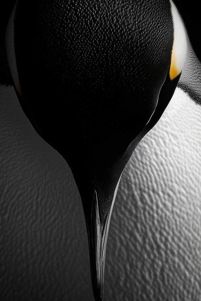 In tiefschwarzer Umarmung tritt dieser majestätische Pinguin hervor, sein gelber Akzent leuchtet geheimnisvoll. Die sanften Kurven seiner silbernen Brust scheinen Schatten zu tanzen, während die Dunkelheit ihn umhüllt. Ideal für das Wohnzimmer, wo er eine ruhige Eleganz ausstrahlen und Gespräche anregen kann. Ein wahrhaft hypnotisierendes Kunstwerk!