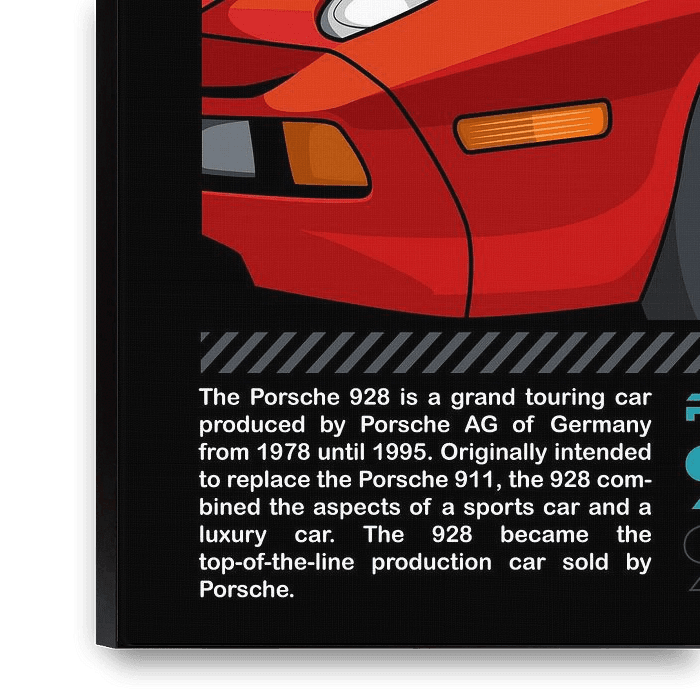 Bestelle dieses Popart-Wandbild Porsche 928 Auto von Adam Khabibi als Reproduktion auf Leinwand, Alu-Dibond, als Poster, Fototapete oder Acrylglasbild.