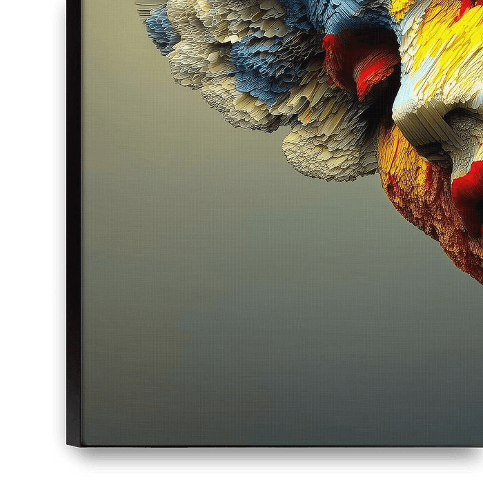 Bestelle dieses abstrakte Wandbild Porträt-Explosion von Preet Lambon als Reproduktion auf Leinwand, Alu-Dibond, als Poster, Fototapete oder Acrylglasbild.