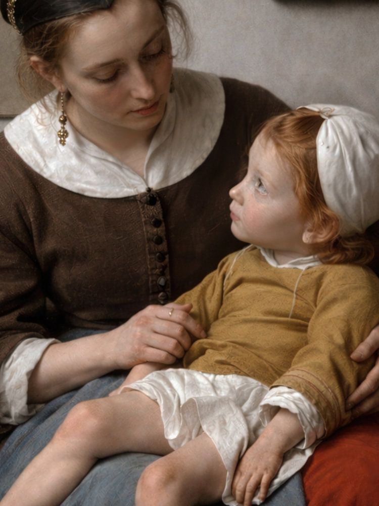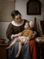 Ein „neuer alter Meister“ – ein Foto, das frei nach dem Vorbild von Gabriël Metsus Werk mit dem Titel „Das kranke Kind“ gestaltet wurde, das er 1665 malte.