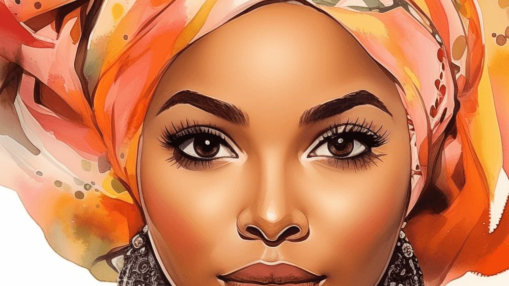 Porträt einer afrikanischen Frau mit lächelndem Aquarell-Kunstdesign und buntem Kopftuch Weißer Hintergrund
