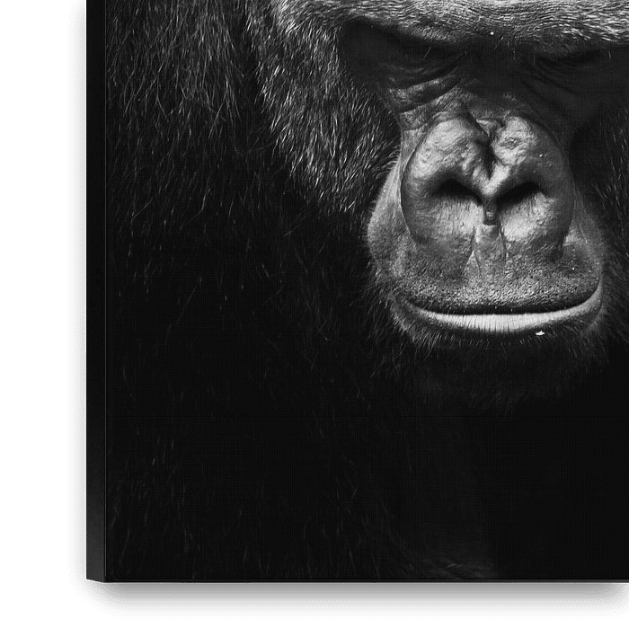 Bestelle das Foto Porträt eines riesigen, mächtigen männlichen Gorillas, F Schwarz-Weiß-Foto als Symbol der Macht von Michael Semenov als Reproduktion auf Leinwand, Alu-Dibond, als Poster, Fototapete oder Acrylglasbild.
