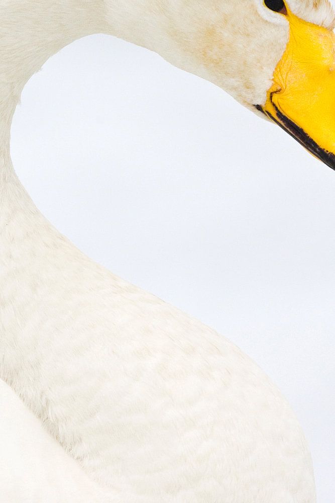 Porträt eines erwachsenen wilden Schwans in winterlicher Umgebung.