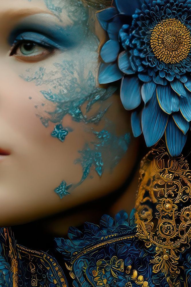 Kombination aus Fotografie und Malerei zeigt ein fiktives digitales Porträt in überwiegend gelben und blauen Farbtönen mit einer Anspielung auf Van Gogh