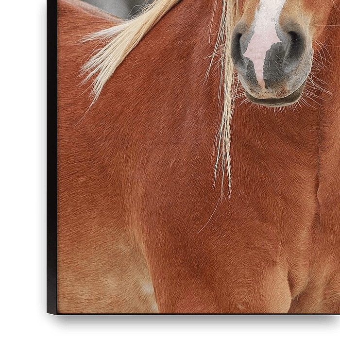 Bestelle das Foto Porträt von einem wunderschönem hellbraunem Pferd von Thomas Heitz als Reproduktion auf Leinwand, Alu-Dibond, als Poster, Fototapete oder Acrylglasbild.