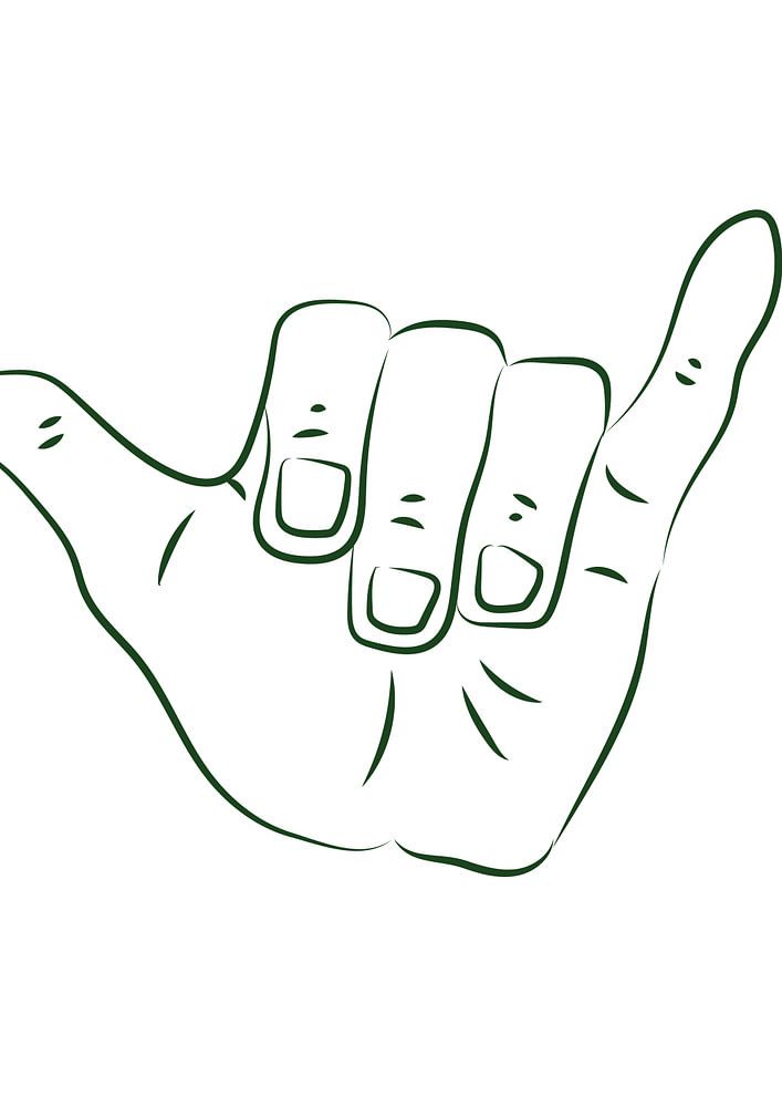 Illustration mit der hang loose/ Shaka-Geste. Aus Terschelling gemacht! Für alle Surfer da draußen.