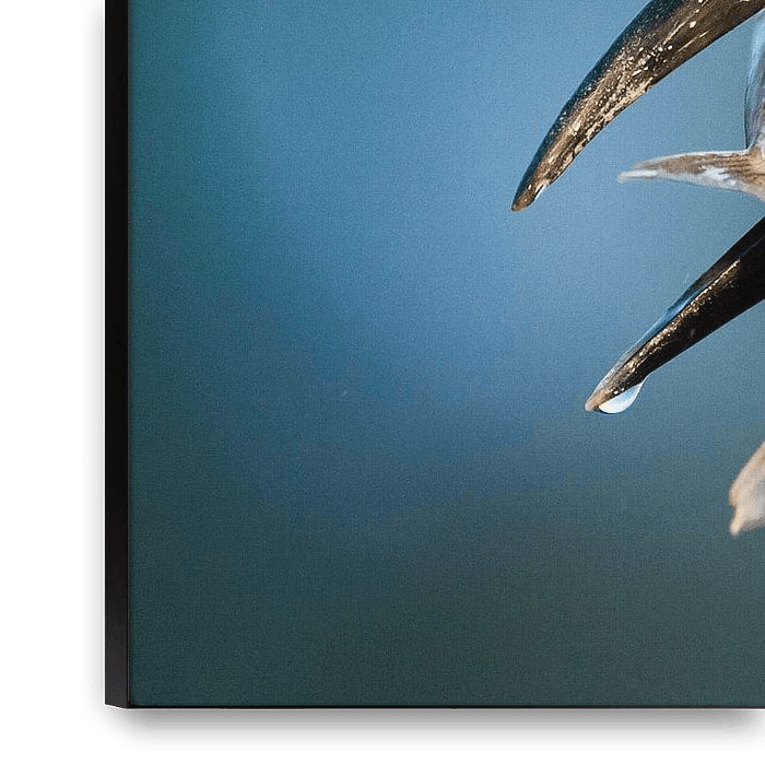 Ihre gewählte Kunst auf Leinwand, gespannt in einem Aluminiumrahmen. Schnell und einfach austauschbar für eine frische Ausstrahlung und ganz nach Ihren Wünschen.