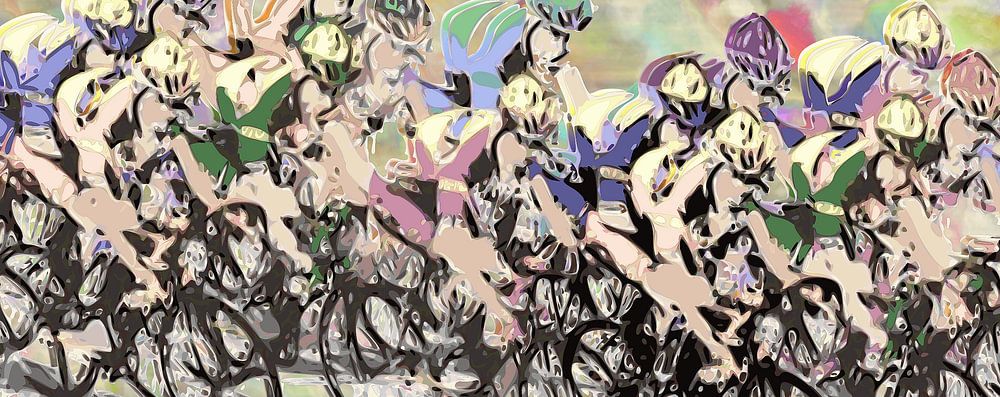 Handgefertigtes Design eines Pelotons von Radfahrern. Erhältlich in verschiedenen Farben auf dieser Website Radsport ist eine der beliebtesten Sportarten der Welt.