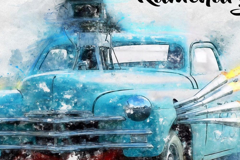 Illustration aus einer Serie weltberühmter Dragster. Gemalt mit Aquarellfarben auf Papier.