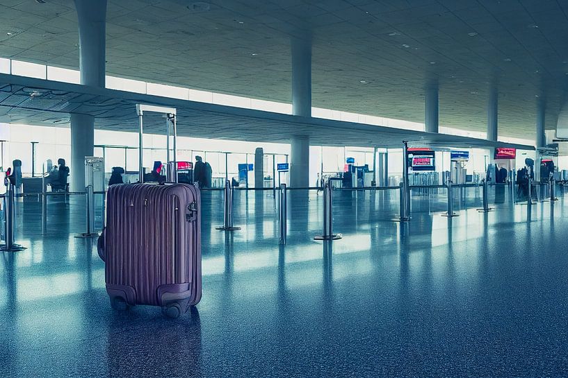 Reise Koffer steht auf einem Flughafen am Terminal Illustration
