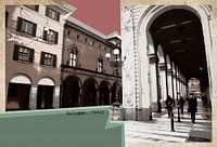 Bestelle das digitale Kunst Bild Retro-Postkarte von Bologna von Ariadna de Raadt-Goldberg als Kunstdruck auf Leinwand, Alu-Dibond, als Poster, Fototapete oder Acrylglasbild.