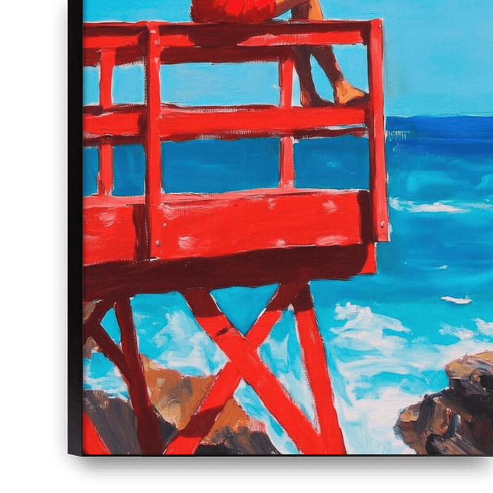 Bestelle diese Illustration Rettungsschwimmer am Meer von Poster Art Shop als Reproduktion auf Leinwand, Alu-Dibond, als Poster, Fototapete oder Acrylglasbild.