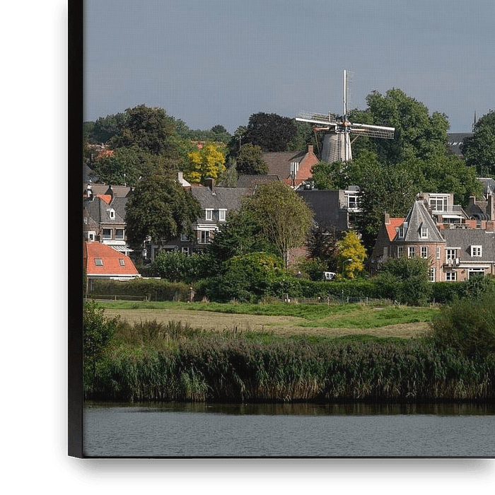 Bestelle das Foto Rhenen Netherlands Cunerakerk aus dem 15. Jahrhundert von der anderen Seite des Niederrheins aus gesehen. von Richard Wareham als Reproduktion auf Leinwand, Alu-Dibond, als Poster, Fototapete oder Acrylglasbild.