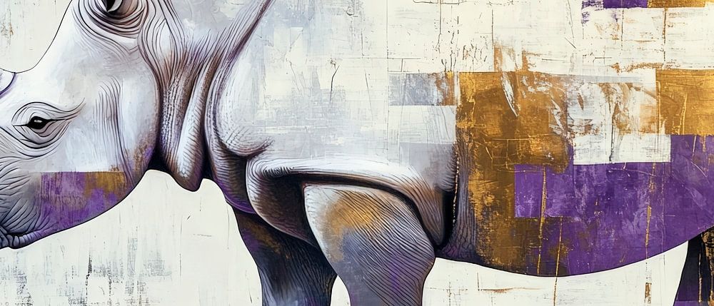 Ein majestätischer Rhinozeros präsentiert sich in kraftvollen, geschichteten Farben, die ihm eine moderne Note verleihen. Die harmonische Kombination aus Weiß und Violett, durchzogen von goldenen Akzenten, zieht sofort die Blicke auf sich. Dieses Kunstwerk bringt eine dynamische Energie in jedes Wohnzimmer und wird zum Gesprächsthema für Gäste.