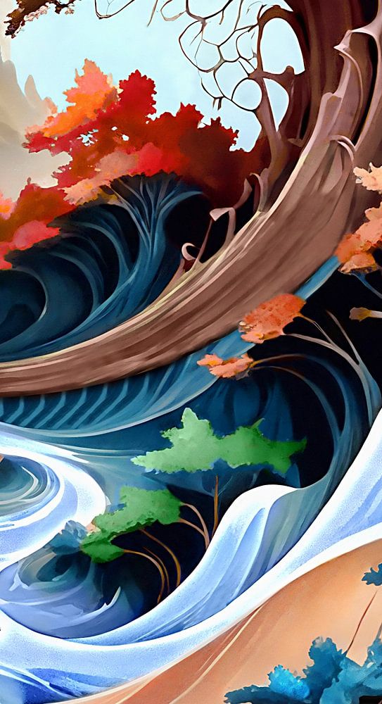 In einer Welt, die von der Zeit unberührt ist, bahnt sich ein Fluss seinen Weg durch die Landschaft.