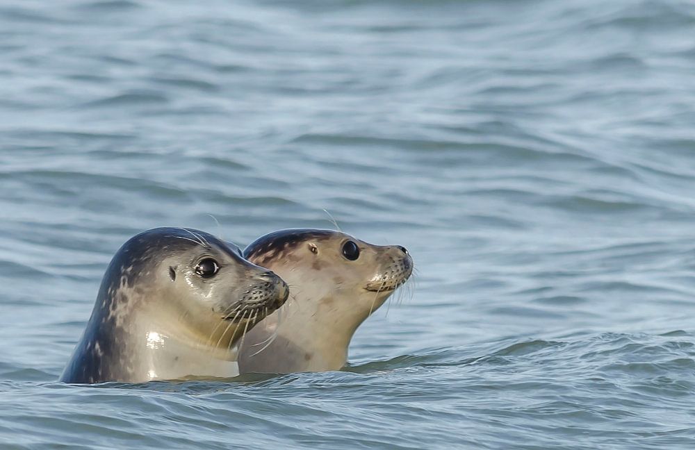 Gerade freigelassene Robben, die nach einer Krankheit oder Verletzung gepflegt wurden, am Strand von Renesse in Zeeland in den Niederlanden. Freigegeben von der Siegelaufbewahrungsstelle A-Seal in Stellendam.
