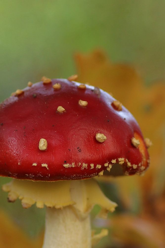 Der Fliegenpilz in der Mitte des Herbstes. Sein Rot passt genau zur Jahreszeit.
