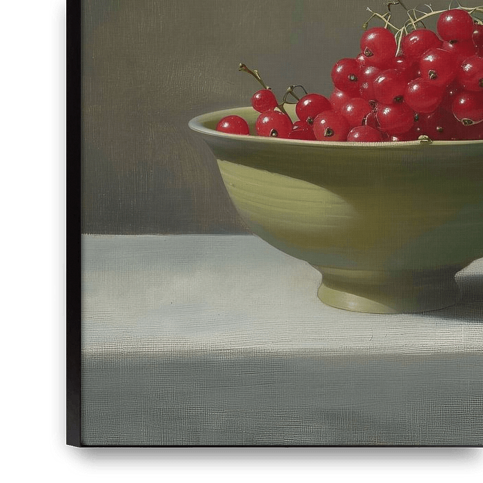 Details: rote Beeren, Stillleben, grüne Schale, natürliches Licht, Gemälde, Kunst,…