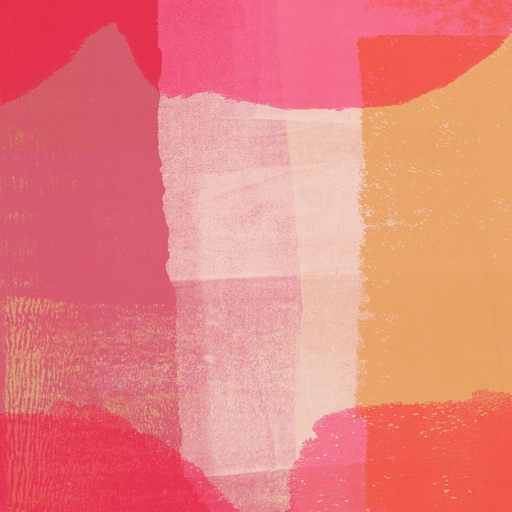 Mixed Media Collage von Monotypien, Texturen, organische Formen in warmen Farben.