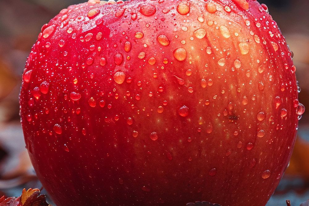 Dieses stimmungsvolle Bild eines leuchtend roten Apfels, der mit funkelnden Tautropfen bedeckt ist, weckt ein Gefühl von Herbst. Perfekt platziert inmitten von herabgefallenen Blättern, die ein Mosaik aus herbstlichen Farbtönen zeigen, von tiefen Rottönen bis hin zu warmen Orangetönen und satten Brauntönen, bietet dieses Bild einen Einblick in die natürliche Schönheit und Vergänglichkeit der Jahreszeiten. Der scharfe Fokus auf den Apfel mit seiner glänzenden Oberfläche und der weiche, unscharfe Hintergrund machen dieses Design nicht nur zu einem visuell, sondern auch emotional ansprechenden Stück für jeden Raum, der einen Hauch von natürlicher Inspiration braucht.